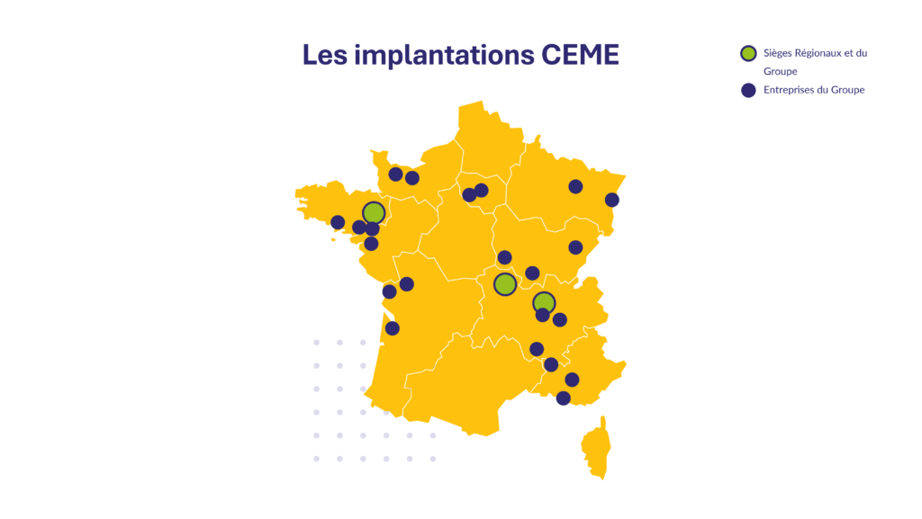 Fondé en 1949 à Moulins, le groupe CEME accompagne les collectivités, les acteurs du tertiaire, les industriels et les particuliers dans la conception et l’installation de projets et de services dédiés à l’efficacité énergétique et au confort thermique des bâtiments. S’appuyant sur un réseau d’entités locales et une organisation nationale, le groupe déploie des solutions innovantes visant à améliorer la performance énergétique et la fiabilité des installations, dans un contexte de transition énergétique, numérique et industrielle.